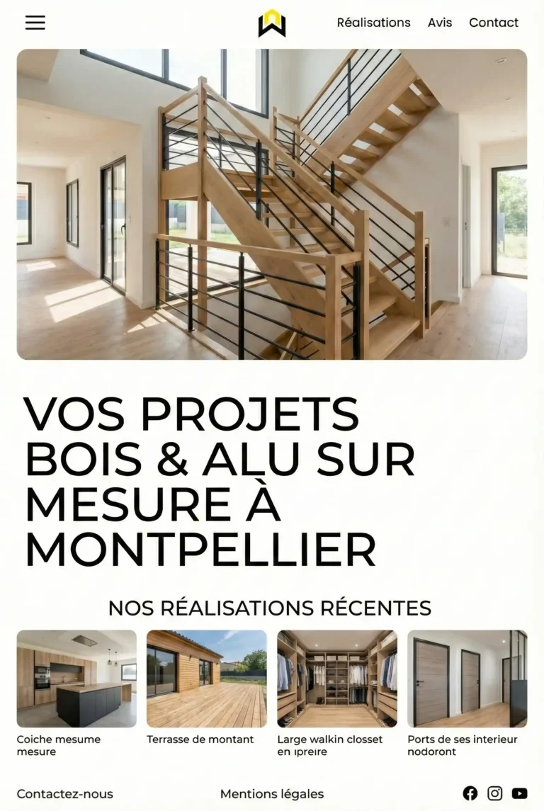 On a remplacé un site amateur par une vraie vitrine. Mise en valeur des poses et rassurance immédiate pour le particulier.